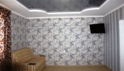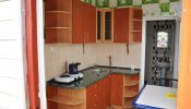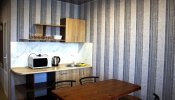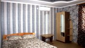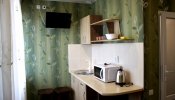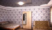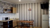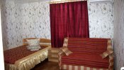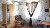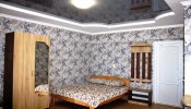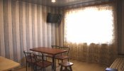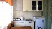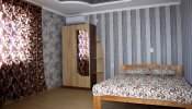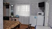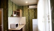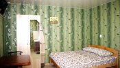 Однокомнатный номер с двуспальной кроватью, двуспальным диваном, кондиционером (сплит -система), холодильником и телевизором со встроенным DVD плеером.В номере сан. узел (душ, туалет, умывальник, круглосуточно горячее водоснабжение (вода питьевая, бойлер)) и полностью оборудованная кухня с электро плитой.