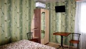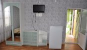 Однокомнатный номер с терассой (вид на море): двуспальная кровать, кресло-кровать, кондиционер (сплит-система), телевизор со встроенным DVD плеером, холодильник, микроволновая печь, электрочайник. Сан. узел с круглосуточным горячим водоснабжением (вода питьевая, бойлер)).