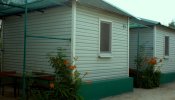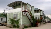 2-х местные отдельностоящие домики с двориками. В номере: две односпальные кровати, холодильник, кондиционер и телевизор, в окнах антимоскитные сетки, во дворике столик и лавочки. Удобства (душевые, умывальники и туалеты) для этой категории жилья расположены на территории базы отдыха.