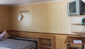 3-х местные (однокомнатные) номера с санузлом (душ, туалет, умывальник, круглосуточно горячее водоснабжение (вода питьевая, бойлер)) и полностью оборудованной кухней. В номере двуспальная кровать и кресло - кровать, холодильник, телевизор и кондиционер (сплит-система), на окнах москитные сетки.